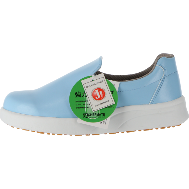 防滑性能と耐油性能を兼ね備えたゴム底で、厨房や食品工場など滑りやすい環境でも安心して作業できる「シェフメイト プレミアム α-100 スカイ」。吸汗性とクッション性に優れた中敷を採用し、長時間の立ち仕事でも快適な履き心地を実現します。耐久性に優れた合成皮革製アッパーは、日々の酷使にも対応。さらに抗菌加工で、衛生面も万全です。爽やかなスカイブルーは、清潔感と軽やかさを演出し、職場の雰囲気を明るくします。