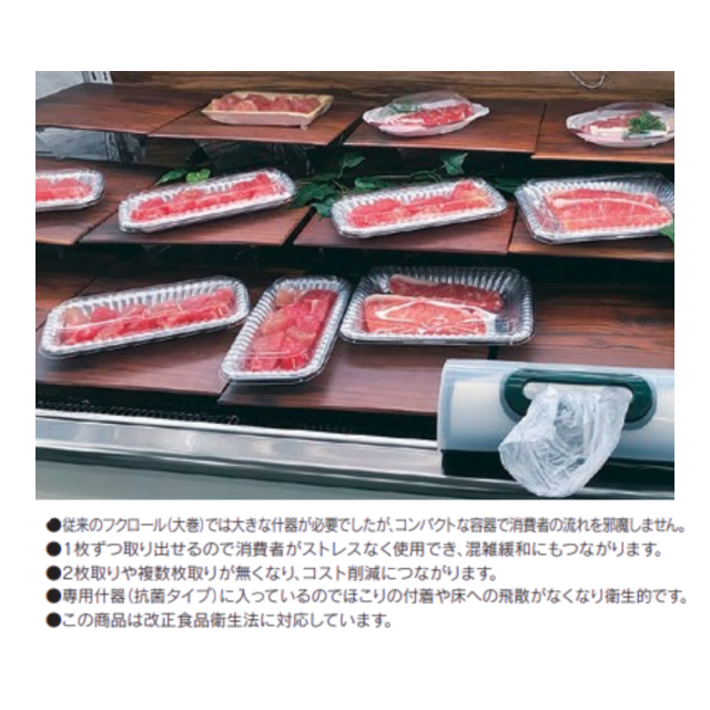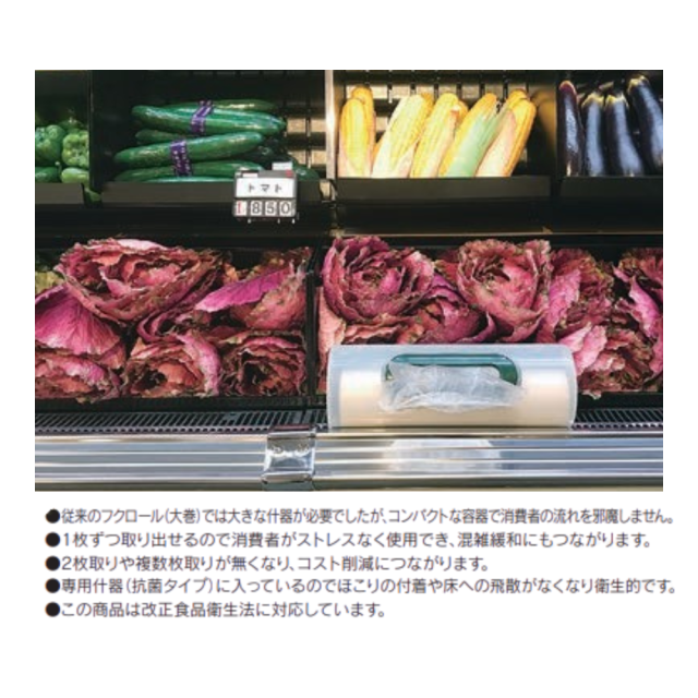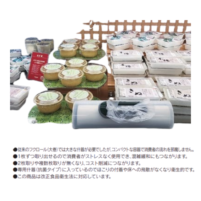 「フクロール小巻」は、HDPE素材を使用した半透明のロール状ポリ袋です。取り出しやすい小巻仕様で省スペース保管が可能。食品衛生法にも適合しており、衛生面にも配慮されています。