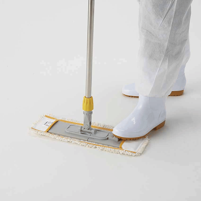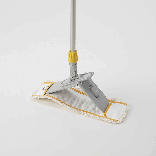 「HG ワイドフレッシュモップ」は、床面および壁面の清拭清掃に適した業務用ワンタッチモップです。衛生管理に適したフラットタイプのヘッドは、ステンレスパイプ製ハンドルとPP製プレートで構成されており、高い耐久性と操作性を兼ね備えています。カラーは5色展開で、施設内のゾーンごとの衛生管理に役立ちます。