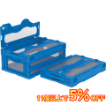 「マドコン C-30B」は、フレーム構造により中身がどの角度からでも見える視認性と、優れた衝撃耐性を兼ね備えたフタ付き折りたたみコンテナです。圧縮荷重11.73kN(1196kgf)の高耐久設計で、底面は斜格子リブ構造を採用し、滑り止め効果も発揮。未使用時は高さ95mmまで折りたたみ可能で、省スペース化にも貢献します。サンロック付きで安全な保管・輸送が可能です。