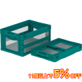 「マドコン O-40B」は、フレーム構造により中身がどの角度からでも確認できる視認性の高い折りたたみコンテナです。圧縮荷重10.26kN(約1047kgf)の高耐久性に加え、未使用時は高さ86mmまで折りたたみ可能で省スペース。底面には斜格子リブ構造を採用し、滑り止め効果も備えています。物流現場での管理性・効率性向上に最適です。