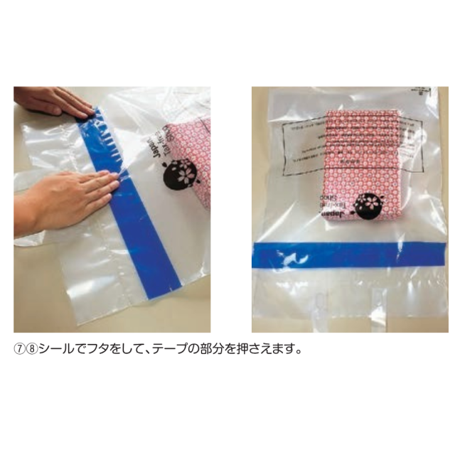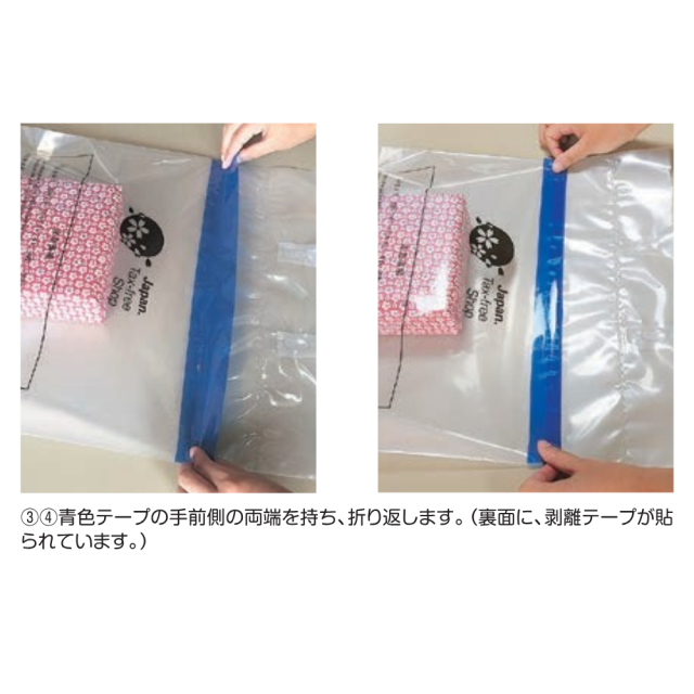 観光客向けの販売に最適な透明タイプの免税店用袋。柔らかく丈夫なL-LDP素材を使用し、ループ付きで持ち運びやすさも抜群。用途に合わせて選べる4サイズ展開。