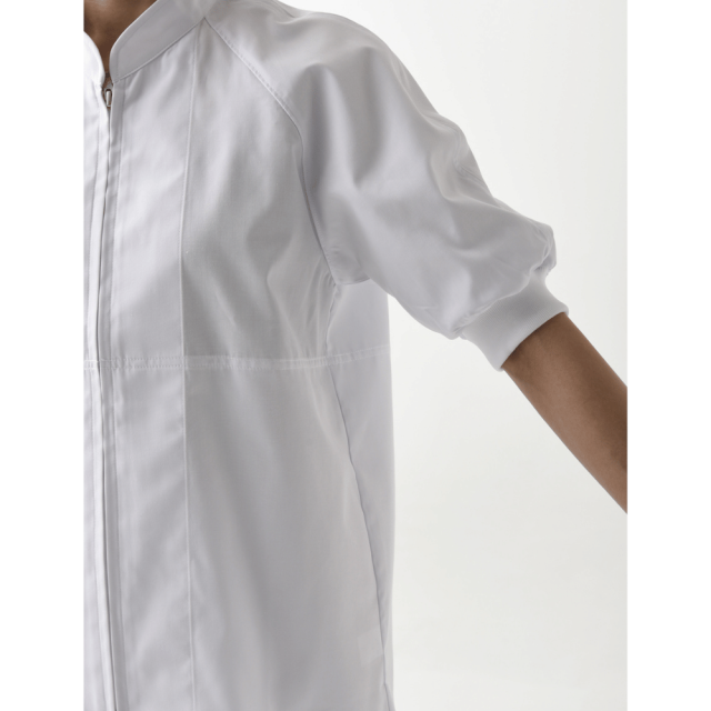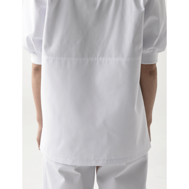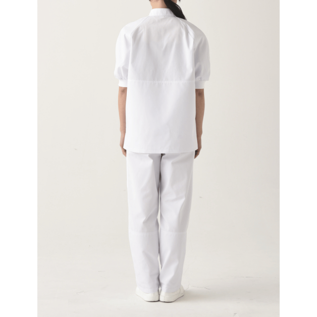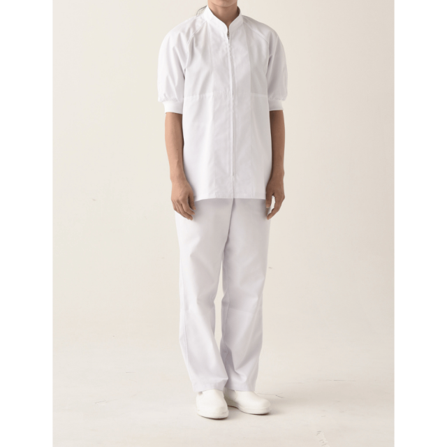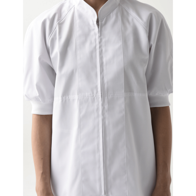 ラグラン構造で腕が動き易い。異物混入を防ぐため袖口リブ、肘内側にもアンダーカバー、アンダーカバー口にはゴムが施されています。ウエストのアンダーカバーも付き異物混入を防ぐディティールが色々と施された半袖衛生白衣です。変形や破損しにくく、熱に強いコイルファスナーを使用。工業洗濯対応。抗菌防臭機能あり。暑い現場でも快適に作業できる、抗菌加工の男女兼用ユニフォームコート(半袖)。清潔さと動きやすさを両立した2着セットで、厨房・医療・清掃業務などに最適です。