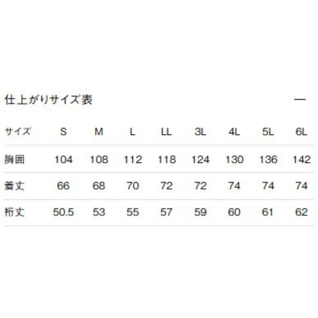 | サイズ | 胸囲(cm) | 着丈(cm) | 裄丈(cm) |